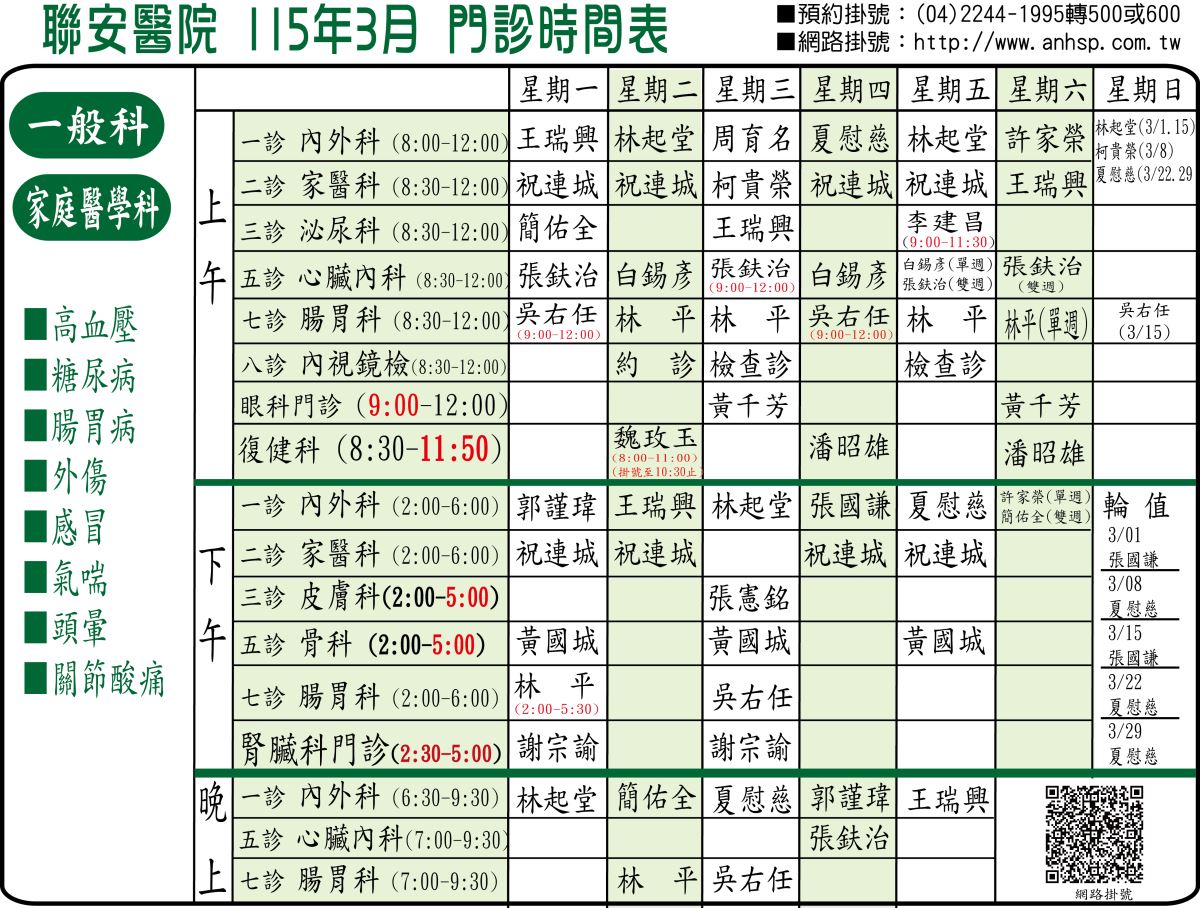 各醫師開診時間不同